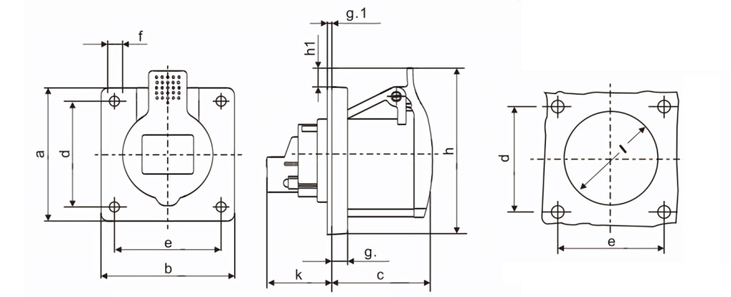IP44 Flange Size 75*75mm(16A,32A) Panel Mounted Socket